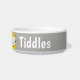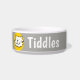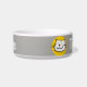 Add your pet's name to this fun bowl that features a cartoon style illustration of a cat smiling. Grey background.