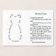 A card containing a drabble (100 word short story) with a cat theme. The front has an outline of a cat made from fragments of the story.
