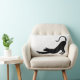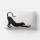 The silhouette of a black cat stretching against a white on white vine design. The design on the back is the same only reversed. Buy two and have one one both sides of the couch.