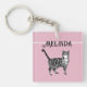 Cat Tabby Pastel Cats Kids Girls Light Pink Badge Key Ring