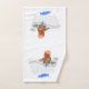This towel set has my cartoon image of a cat in a shower cap, taking a bath. She has a bar of soap in one hand and a sponge in the other.