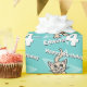 Birthday wrapping paper in bright teal mint green cat / kitten design. Personalise this cat birthday paper with your child's or cats name and age. Currently reads Happy Birthday Edwina 4 today. Uniquely illustrated and designed by Sarah Trett.