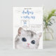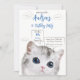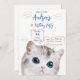 Cat Themed Birthday Invitation for our upcoming celebration. Kid's birthday party invitation with a cute cat theme, featuring a white kitten with blue eyes on a white background. Adorable quote bubbles for customising your party details.