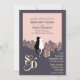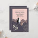 Monogram themed wedding invitation, with cats element and urban view. Cartoon design, appropriate for wedding announcements, engagements for couples who love their pets or cats in general. Please personalise capital letters of the monogram, and other text.