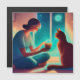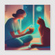 A woman sits on the floor, holding a candle in her hand, with a cat sitting across from her. Together, they share a secret, spiritual connection, as if the cat were her therapist. This whimsical and humourous fantasy art piece, created by Lumirala and Magic Media AI, captures the unique bond between the woman and her feline friend. Available in various sizes, this magnetic card is perfect for adding a touch of enchantment and humour to your message.It’s an ideal card for cat lovers, art enthusiasts, and anyone who appreciates the mystical and magical aspects of life.