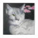 A pencil and pastel drawing of an adorable one-eyed grey tabby cat adorns this tile!