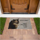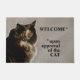 A Welcome doormat, of course, upon approval of the Cat. A big fluffy, tortoiseshell cat guards your door on this neutral colour doormat with a customisable Welcome greeting and a fun humourous warning. With some easy editing the background colour can be changed to any muted colour you wish. This is original tortie cat photography by JLW_PHOTOGRAPHY.