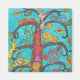 The Tree of Life, a tree with many branches, is an archetypal recurring theme in many world cultures signfying the interconnectedness of all life on our planet. It appears in artwork, theology, philosophy and mythology worldwide. This colourful version features colourful leaves,whimsical bark patterns, and numerous multicolored cats in action poses, each covered with unique colourful markings reminiscent of those found on painted Oaxacan animal carvings.