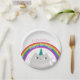 Cute, unique, colourful, personalised kawaii Caticorn girl birthday paper plate with name, cat unicorn and rainbow.