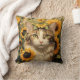 Cat Watercolor Sunflowers Floral Painting Cushion