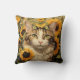 Decorator pillow with a painting of a beautiful grey and white cat surrounded by yellow sunflowers. Contact me for assistance with customisations or to request additional matching or coordinating Zazzle products.