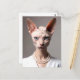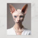 Here's a unique being - maybe a human-cat hybrid - who's rocking pearls and a white blouse. She looks pretty serious, too. She's in it to win it. Never underestimate a Sphynx cat wearing pearls.