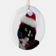 Cat wearing santa hat photograph, BW kitty Ceramic Tree Decoration