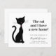 Modern budget-friendly new home / change of address moving announcement featuring a cute illustration of a chic and elegant black cat with a pink collar. On the front, personalise with your name in a stylish script, the "cat and I have a new home" text and your new address. On the reverse side, personalise your announcement in more detail and include a telephone number and email if desired.