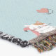 A quality printed throw has its advantages. This is a much finer weave throw than its loopier cousins, and though lighter, it is worth the investment for custom room accessorizing. The back is much prettier than the typical brown, and the fringe on the long sides very vivid, the selvage nicely done. Before photographing, I washed the throw in cold water, delicate, with a thicker woven throw the same size. On tumble dry low, this throw was dry in half the time as the other. This is a very practical quality if you use throws for furniture covers or to wrap up in frequently. The sleekness of the fabric makes it a great layer for accenting or protecting without the feeling of sitting on too much stuff. Perfect for napping or when you feel a light chill coming on. The color printing is beautiful and on this fabric, matched the design and color of my Photoshop image. This is an advantage for blending room fabrics and colors. The fringe on the short sides prints the colors from the design image and therefore varies from the side fringe. I streaked a white fractal line through the plaid pattern to give the illusion of weaving. This printed as crisp as an illusory thread, and put some white in the short side fringe, showing another advantage of print vs loomed- for artistic purposes, line lines, detail, and color integrity can be planned and preserved. My loomed throws have color limitations and more of a needlepoint texture. Print throws reproduce an exact image. The throw felt a little stiff straight out of the package, but this went away in the first delicate wash. Of course I searched the wash water for ink or bleeding and there was none.