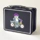 This is a standard metal lunchbox that appears to work just fine. We designed this box ourselves with an uploaded photo and custom text on the front and back. It looks absolutely beautiful except the front of the lunchbox is not centered like it shows in the photo. The print borders don't align with the inset flat part of the box where the preview photo online showed it perfectly centered in there. The back looks nice and centered though.
