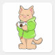 Cat with Cup of Coffee & Pyjamas Square Sticker