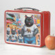 This is a standard metal lunchbox that appears to work just fine. We designed this box ourselves with an uploaded photo and custom text on the front and back. It looks absolutely beautiful except the front of the lunchbox is not centered like it shows in the photo. The print borders don't align with the inset flat part of the box where the preview photo online showed it perfectly centered in there. The back looks nice and centered though.