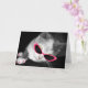 A card featuring a black and white photo of a cat with pink sunglasses & claws. Inside is blank.