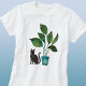 Modern watercolor painting of a little black cat sitting by a house plant in a turquoise blue pot. Original art by Nic Squirrell. Great for cat and houseplant lovers.