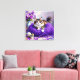 Cat with Purple Eyes in Purple Yarn and Flowers Canvas Print