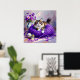 Cat with Purple Eyes in Purple Yarn and Flowers Poster
