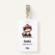 Name badge with a whimsical drawing featuring a big orange red kitty cat.