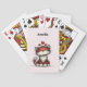 Playing cards with a whimsical drawing featuring a big orange red kitty cat.