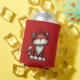 Can cooler with a whimsical drawing featuring a big orange red kitty cat.