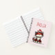 Spiral notebook with a whimsical drawing featuring a big orange red kitty cat.
