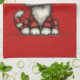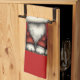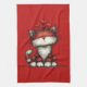 Kitchen towel with a whimsical drawing featuring a big orange red kitty cat.