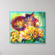CAT WITH RED RIBBON AND SUNFLOWERS CANVAS PRINT