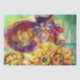 CAT WITH RED RIBBON AND SUNFLOWERS TISSUE PAPER