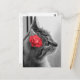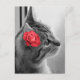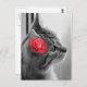 This fun postcard for cat lovers features a photograph of a tabby cat with a rose in her ear. She is looking longingly out of the window as if she is all dressed up with nowhere to go!