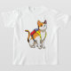 The t-shirt feels and looks great quality, a good thick cotton. It will be a little big for my son, but that means he will be able to wear it and not out grow it too soon. The print was as described on the order when personalised. True size, shape and colour T-shirt- thanks.