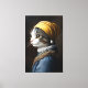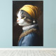 This artwork is a playful and creative reinterpretation of the famous painting “Girl with a Pearl Earring” by Johannes Vermeer. In this version, the figure is portrayed as an elegant cat with a soft, expressive gaze, adorned with a yellow headscarf and a single pearl earring. The realistic textures of the fur, clothing, and accessories blend classical painting techniques with a whimsical animal twist, creating a unique fusion of fine art and fantasy.