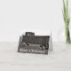 Christmas card featuring black and white photo of a Siamese cat next to a train in the mountains, with a classic holiday greeting inside.