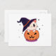 Cat with witch hat in Halloween Jack-O-Lantern Postcard
