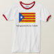 This item features the L'Estelada Blava" (The Blue Starred Flag), the blue version of the pro-independence movement for Catalonia or Catalan, with the L'Estelada Vermella" (The Red Starred Flag), the red version of the pro-independence flag on the back.