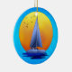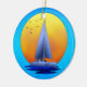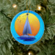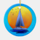 Catamaran sailboat with an ocean sunset and seagulls and a ocean blue background.
