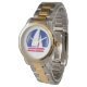 Very good quality watch that looks good whether dressing up or down. The band is sturdy. The watch is rather large so might not work for smaller folks. Recommended as a good gift. Printing is just a touch light but adds a nice touch of personalization.