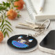 A round Keychain with a Catberry on it!