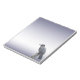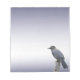 Each page of this notepad features a Grey Catbird perched on a fence post set against a luminous blue metallic gradient. He is a grey bird with a black cap and bright rusty feathers under the tail. Grey Catbirds are relatives of mockingbirds and thrashers, and they share that group’s vocal abilities, copying the sounds of other species and stringing them together to make their own song. Their call sounds like the meow of a cat.