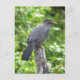 This postcard features a Grey Catbird perched on a fence post.. He is a grey bird with a black cap and bright rusty feathers under the tail. Grey Catbirds are relatives of mockingbirds and thrashers, and they share that group’s vocal abilities, copying the sounds of other species and stringing them together to make their own song. Their call sounds like the meow of a cat.