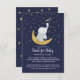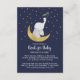 Sweetest little elephant sitting on a gold moon with a white bunny catching a star set on a midnight blue background. Available in our shop in other colours for a girls baby shower or boys baby shower. Visit our shop to view our entire catch a star elephant baby shower collection.