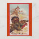Cute Vintage Turkey running and Pilgrim boy chasing, fun Art. Thanksgiving Greeting Card with old fashioned Thanksgiving Day Greetings. Cute and funny postcard.