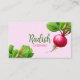 Be remembered by this cool and modern business card for caterers, nutritionists, personal chefs and farmer's markets! It features a bold and dynamic watercolor radish illustration with stylish calligraphy script font on a light pink background. This card designs is also great for any service catering to vegetarians and vegans! Also check out the even more unique kraft cardboard version in the shop! :)