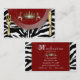 Catering business cards and restaurant business cards ready for you to customise. Zebra animal print background with cutlery and place setting. A great card for any restaurant or catering co. or wedding planner or event planner.