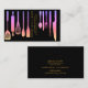 Clean catering business card for chef and cooking masters presenting kitchen tools in gold metal hanging on dark black surface.
