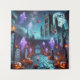 Beneath a moon veiled in drifting clouds, a gothic cathedral rises like a sentinel over the cobblestone graveyard. Purple spirits drift silently among flickering candles and carved pumpkins, their glow casting spectral reflections on weathered tombstones. The cathedral’s iron gate stands ajar, inviting the brave—or the foolish—into its shadowed halls. Stars shimmer faintly above, but the night feels heavy with secrets, as if the air itself remembers every whispered prayer and unspoken fear. A place where time lingers, and the veil between worlds thins.